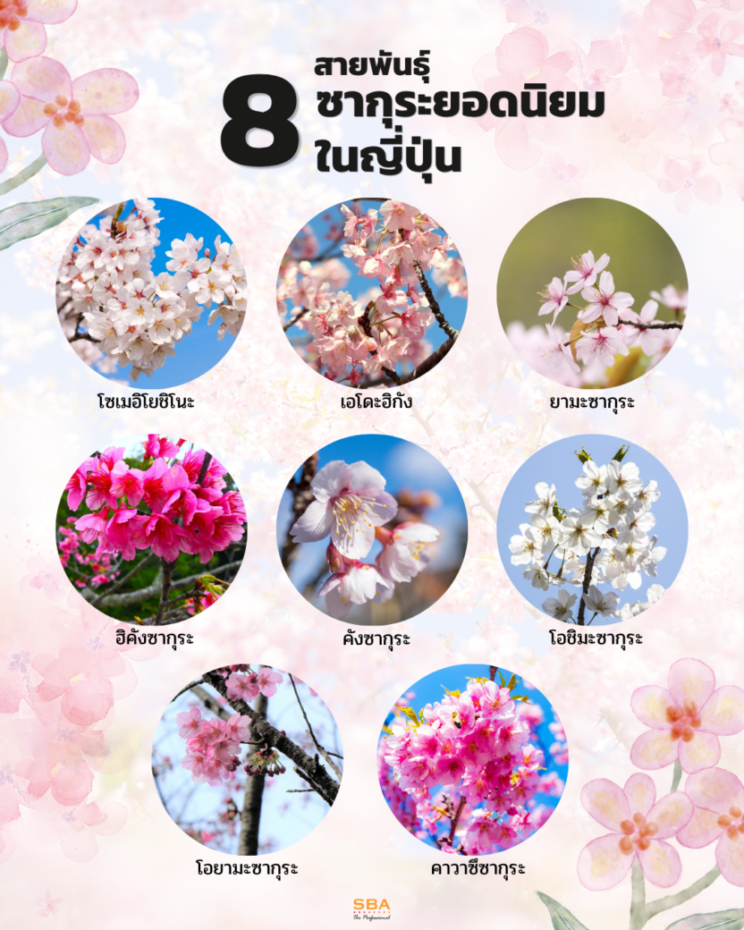 ซากุระ (Cherry Blossom) ดอกไม้ประจำชาติญี่ปุ่น กำลังผลิบานทั่วประเทศแล้ว! แม้ในญี่ปุ่นจะมีซากุระมากกว่า 400 สายพันธุ์ แต่วันนี้เราขอพาไปรู้จัก 8 สายพันธุ์ซากุระยอดนิยม ที่นักท่องเที่ยวและคนญี่ปุ่นมักชมในฤดูใบไม้ผลิ